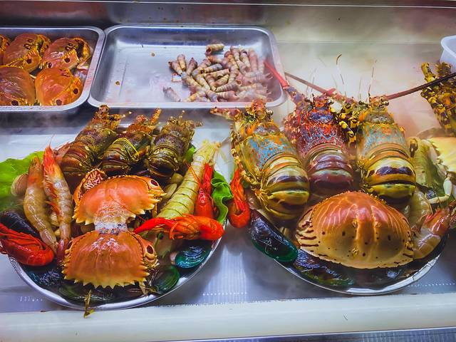 所有的海鲜都是肉眼可见的鲜活,并且明码标价这一点要夸的。选好海鲜服务员称好重后就拿去后厨制作,我选的石斑端上桌的样子和活着的时候没啥区别,证明后厨没有掉包。活海鲜现蒸出来真的很鲜嫩很好吃。