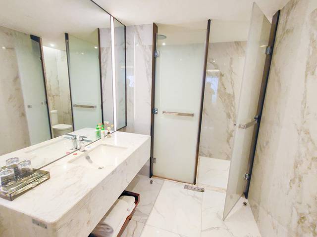我定的2居室,能住4个人,每间卧室都有独立的卫浴,并且还有洗衣机和厨房,非常适合一家人或者几个好朋友一起来度假。而且他们家的厨房不是摆设,是真的可以做饭。想要做饭的话需要电话给前台,然后会有服务人员会送厨具和餐具到房间,走的时候需要自行把餐具清洗干净。