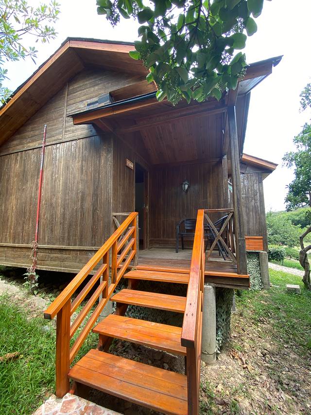 5月7日下午入住鹿嘴山庄,12平米的山景木屋房直接给一座小木屋。