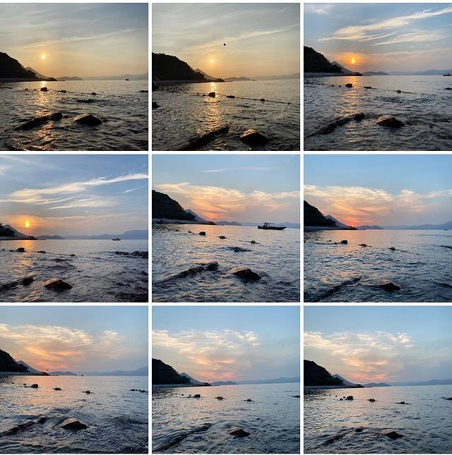 下午鹿嘴山庄,办好入住后在房间躲太阳暴晒,四点多才出门溜达,趁着光线正好,去悬崖人鱼洞那边,水清天蓝,随手拍都是大片。五点多去沙滩,沙滩很小,旁边一条小路通往快艇上下客的海滩,找块礁石坐看日落。