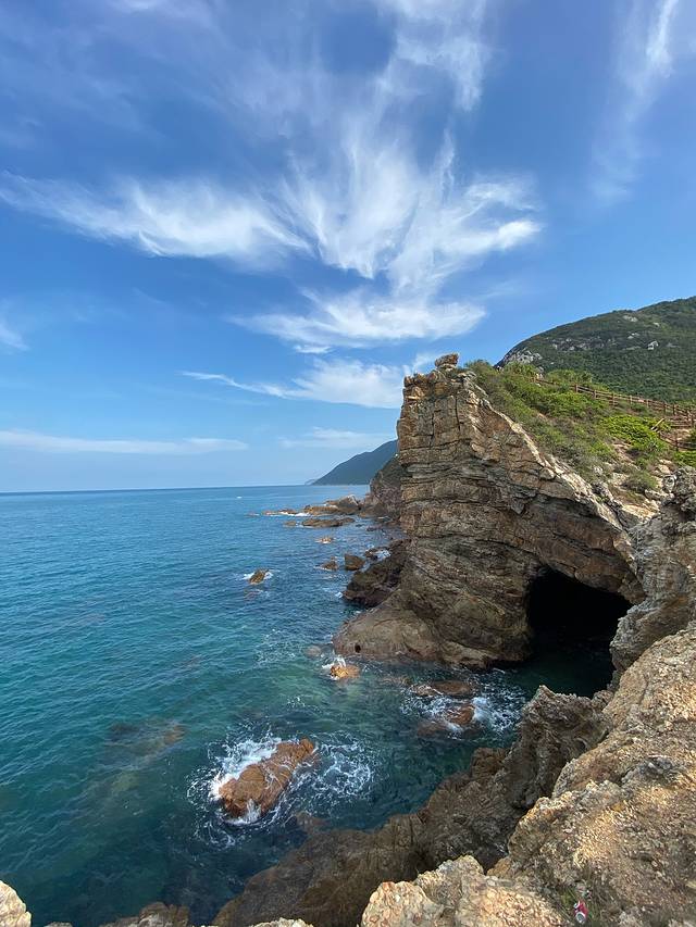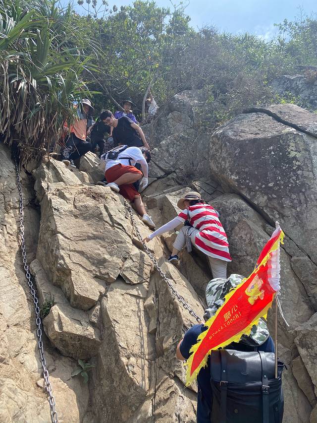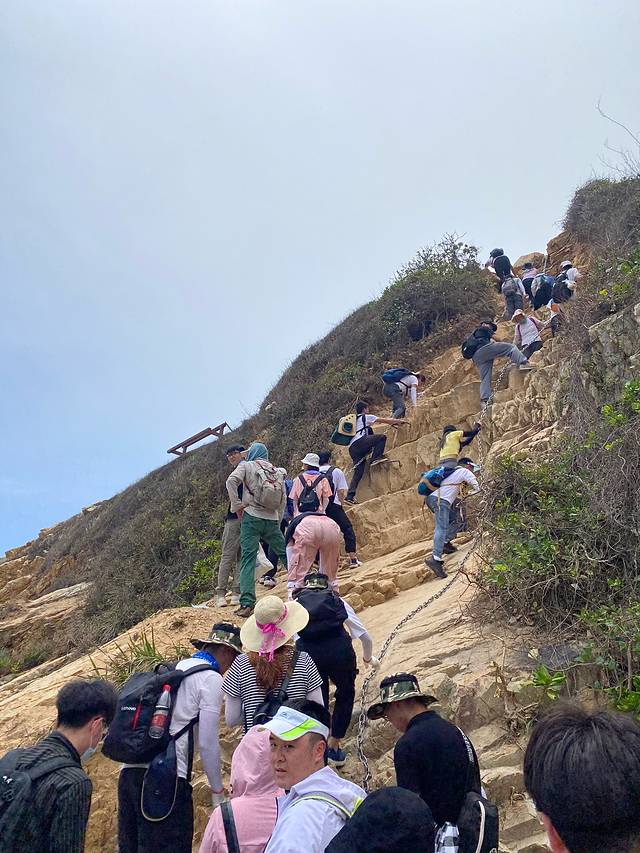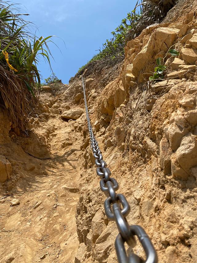 5月4日,东西冲海岸线徒步,淘宝上报的旅行团。上山下山都是这种陡峭的坡,靠铁链攀爬,全程一共爬五个山头,7.5公里,沿途有小摊可以补给矿泉水