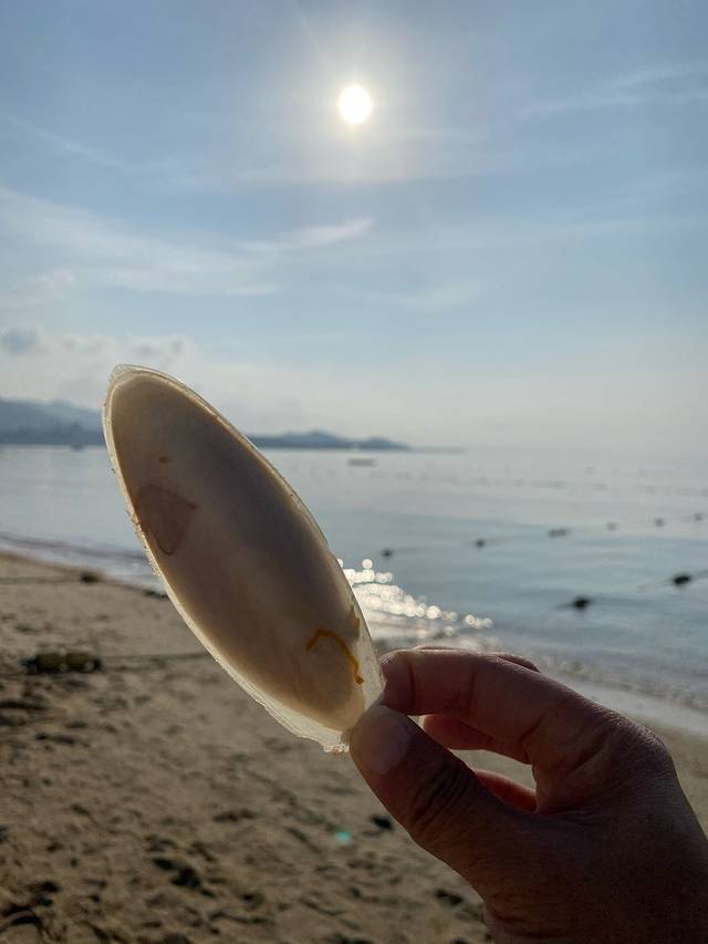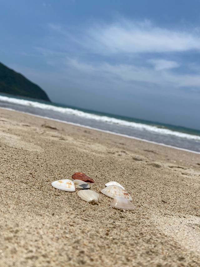 冰粉摊的阿姨告诉我早上五六点可以在沙滩捡到大贝壳,起不了这么早,所以只捡了一堆小贝壳。