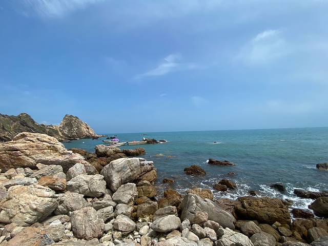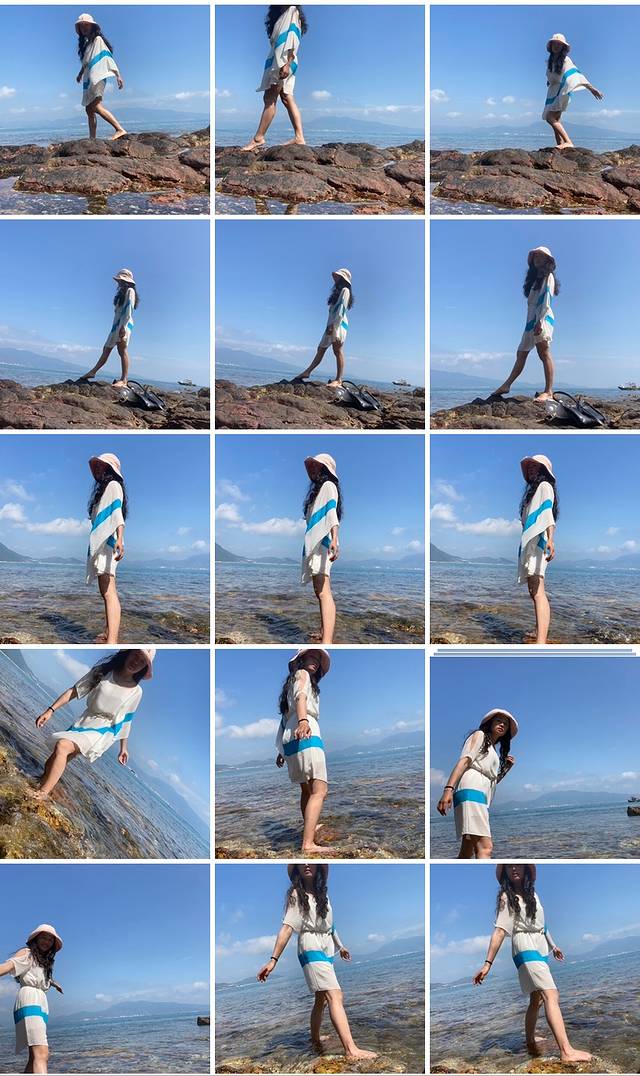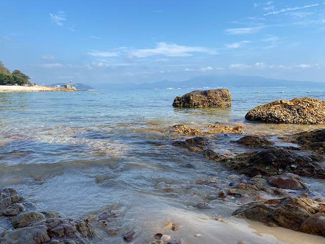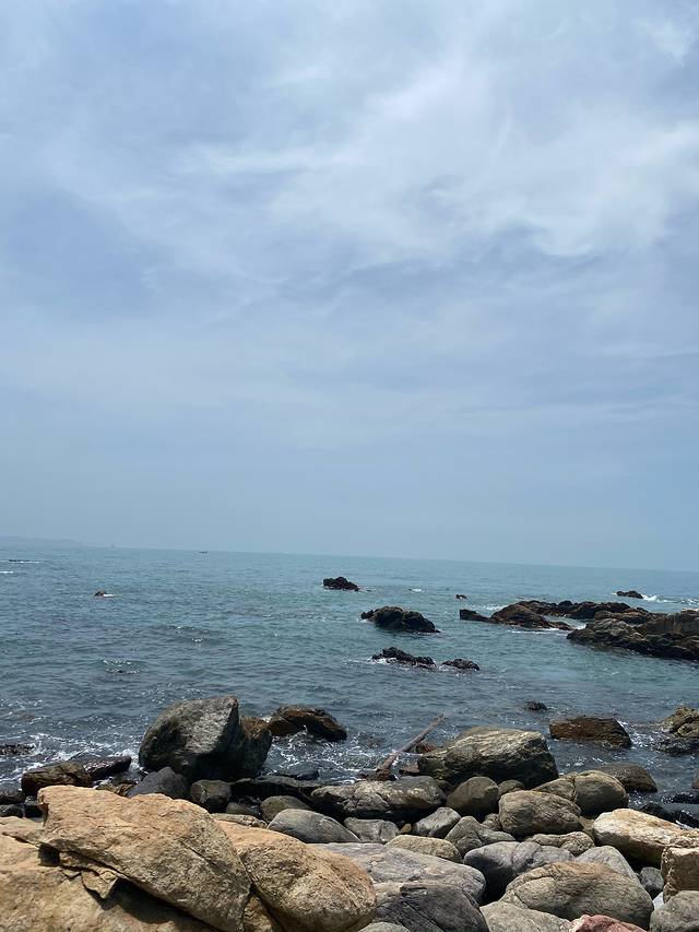 一上午在礁石滩上坐着看风景,拍照,礁石被海水打磨得很光滑,光脚在浅滩的海水里踩水很惬意。