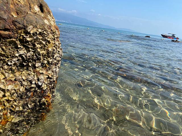 长满贝壳的礁石,水里时不时有小鱼游过