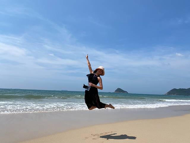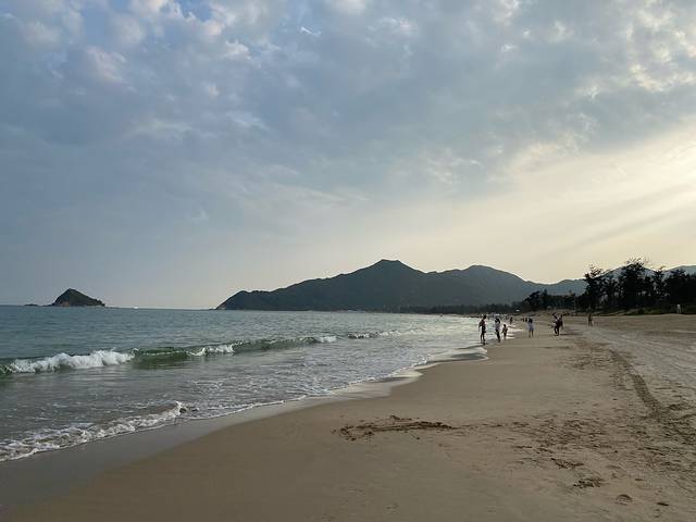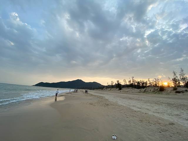 沙子比较粗,水也有点脏,浪也不讲武徳,挽个裤腿的功夫,鞋子差点被卷走。还是喜欢西涌沙滩的磅礴大气,