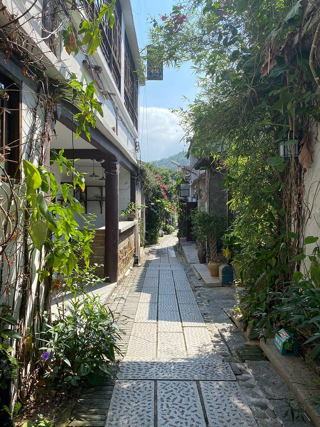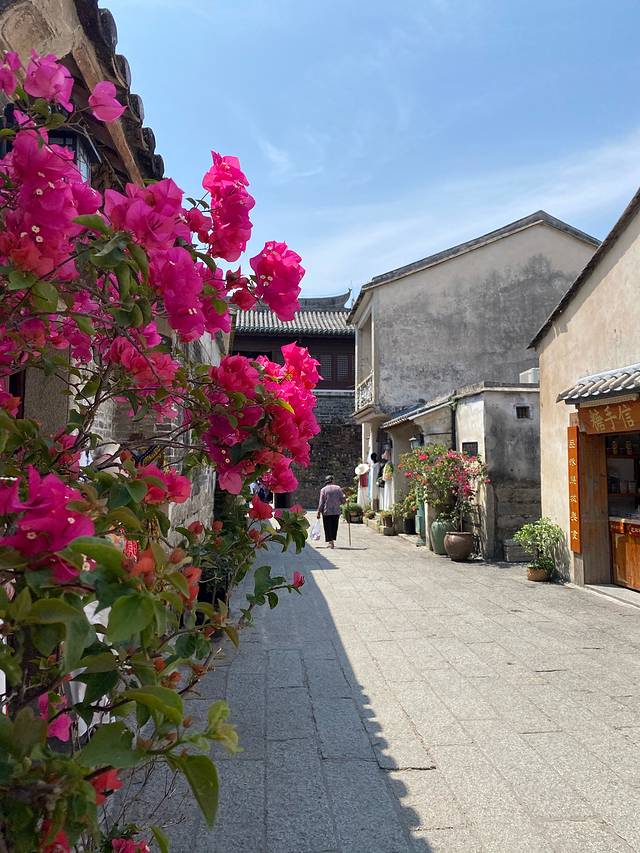 上午大鹏所城,想要到拗造型拍相片的可以早点出发去古城,长巷里家家有花,酒旗招展,人少景美,十点以后人才陆续多起来,九点多到的时候店铺都关门,我都怀疑是不是非节假日店铺都不营业的。