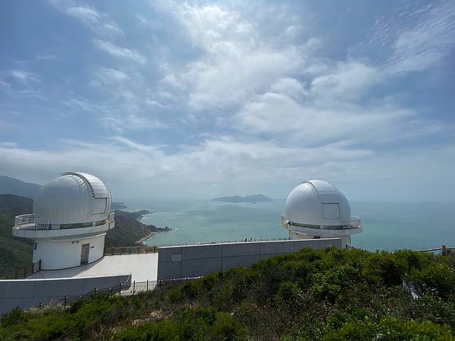 约到了天文台上午的参观券,可以免费进沙滩,左边的山路通往天文台,山上有无敌海景,西涌沙滩尽览。天文台后面下山的栈道通往徒步的最后一个山头,可以一路下到无人的海滩。