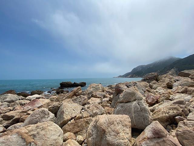 天文台后面的小栈道下去就是东西涌穿越的最后一个山头,前天没力气去爬的礁石,今天终于爬上了,满足