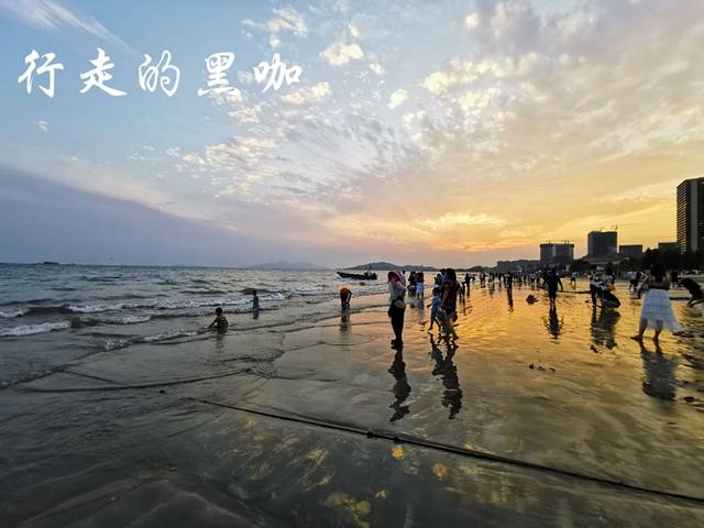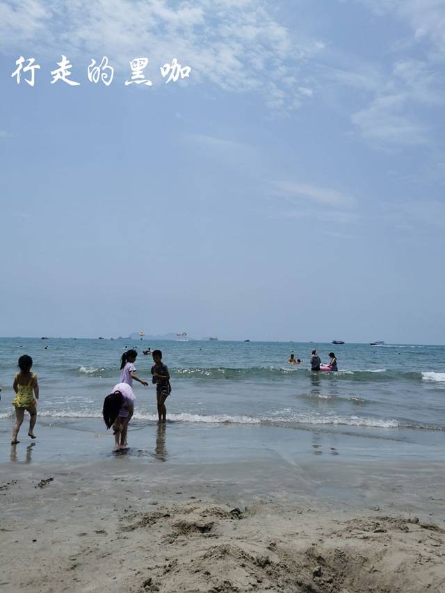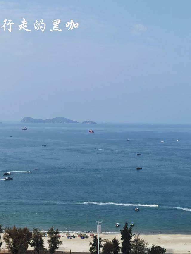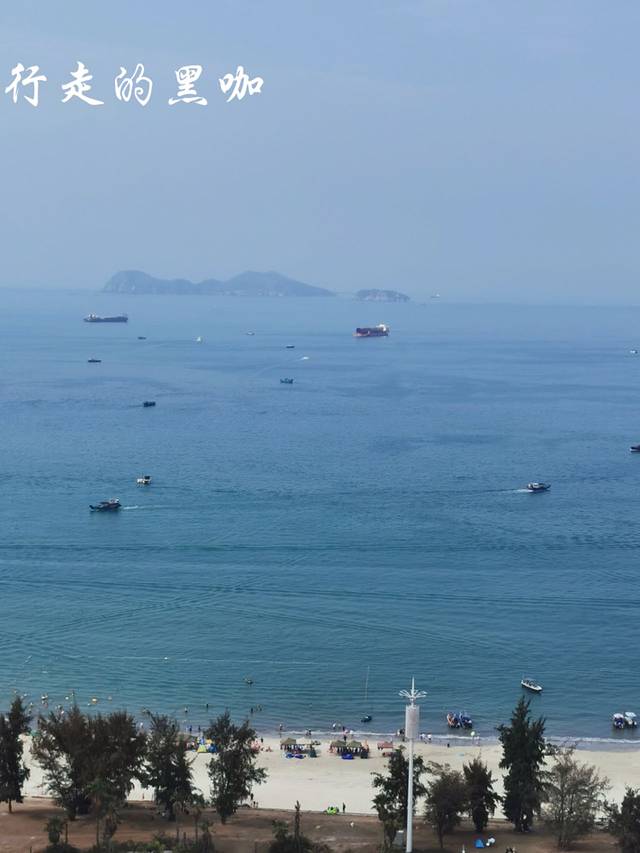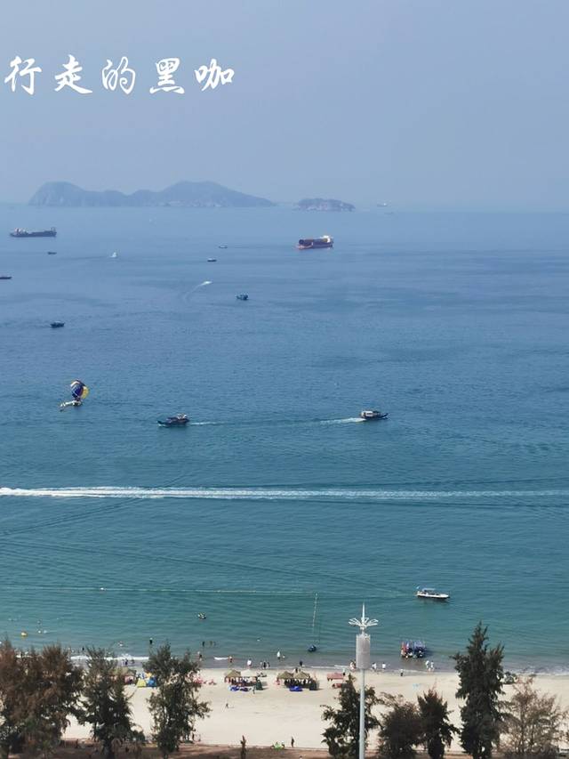 初见双月湾,碧海蓝天,一望无际,海面上泛着粼粼波光,海岸线绵延舒缓,沙滩宽厚,细腻柔软,海上娱乐项目五花八门,海滩上各种物资需求一应俱全,是旅游度假的好去处~
