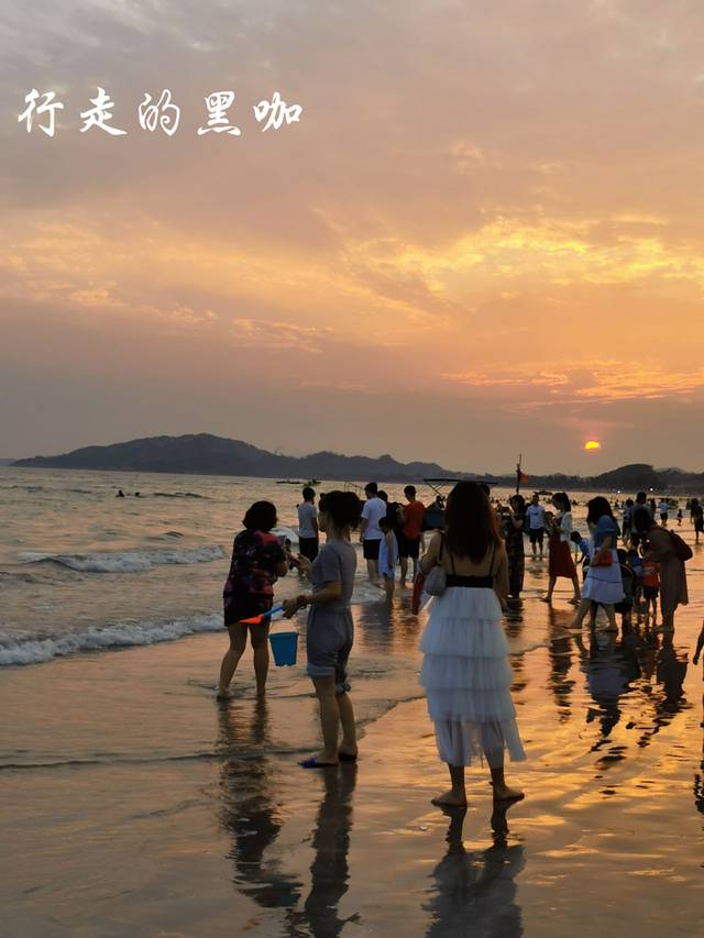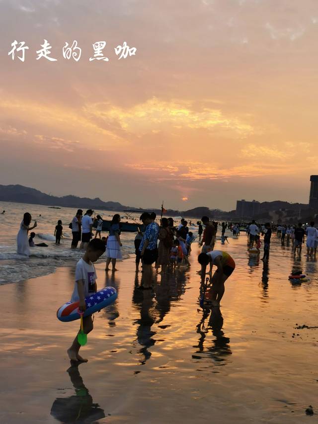 傍晚退潮后,开心欢快的依然要数小朋友,一个个的都提着个小水桶,小铲子,在沙滩上挖呀挖,捡呀捡,来回奔跑,小螃蟹,小乌龟,小贝贝~无一幸免,都被小家伙收入桶中~