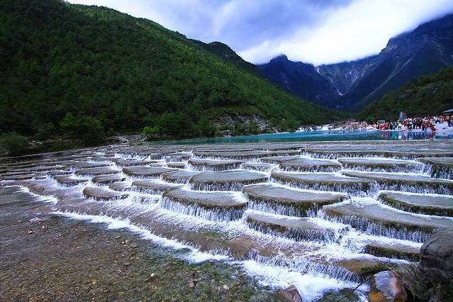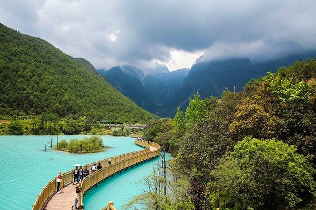 从玉龙雪山下来有大巴前往蓝月谷(景区接驳大巴费用已包含在门票内)。蓝月谷的水色非常特别,像加了牛奶的玉色,也像Tiffany蓝。有牦牛可以骑着拍照。