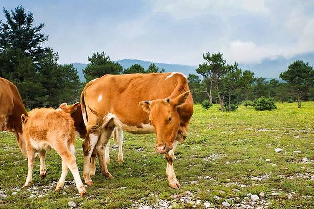 一早橙橙家司机大哥就到离客栈最近的地方接我们上车 前往玉龙雪山,山脚下有吃草的牛儿,可以遥望玉龙雪山拍拍照。