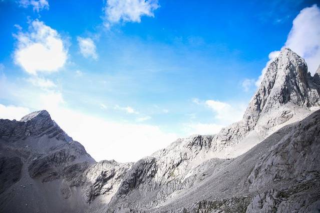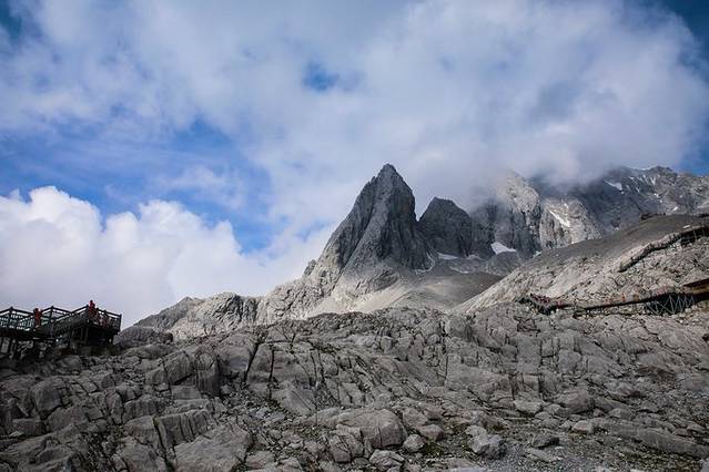 玉龙雪山为云南省丽江市境内雪山群,是北半球最近赤道终年积雪的山脉,隔江西与中甸雪山、东与绵绵山相并列,北自三江口,如扇面向古城展开。全山的13座山峰由南向北纵向排列,主峰扇子陡最高处海拔5596米,终年积雪。