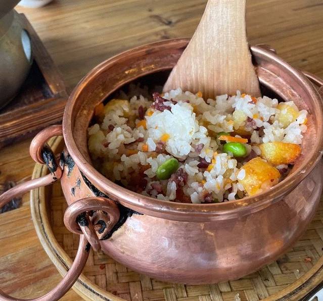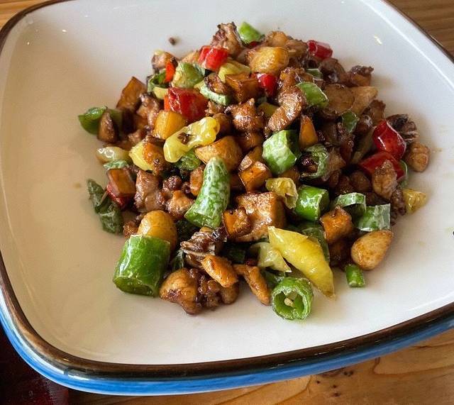 回来挺晚的,看到这家特色美食餐厅还开着门,就去了吃上一餐,真的惊喜到我了,太喜欢她家的菜了,主打美食小锅饭,还真的蛮香的,就是很多米饭和很多辅料一起烘焙出来的,底层的锅巴更是好吃到极致,排骨做的好,脱骨好到位,吃起来软软的,超级舒服,包浆豆腐,这个中国舌尖上的美食之一,外焦里嫩,吃起来舒服,辣子鸡丁,外层皮有点小焦,吃起来香香的,舒服,环境很好,门口就是小溪,这家店还有很多明星吃过,实至名归!