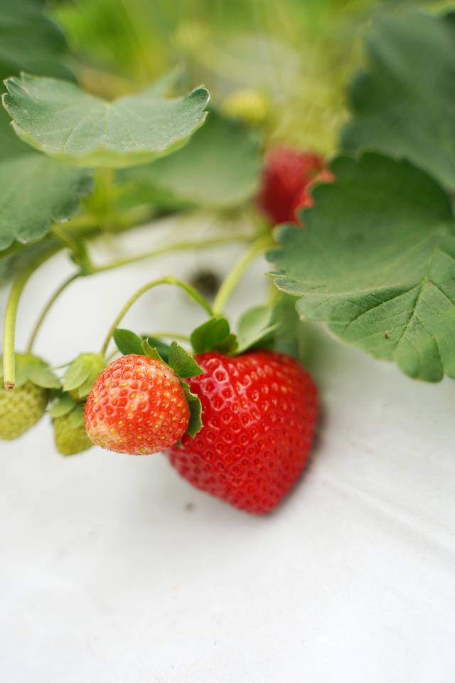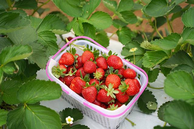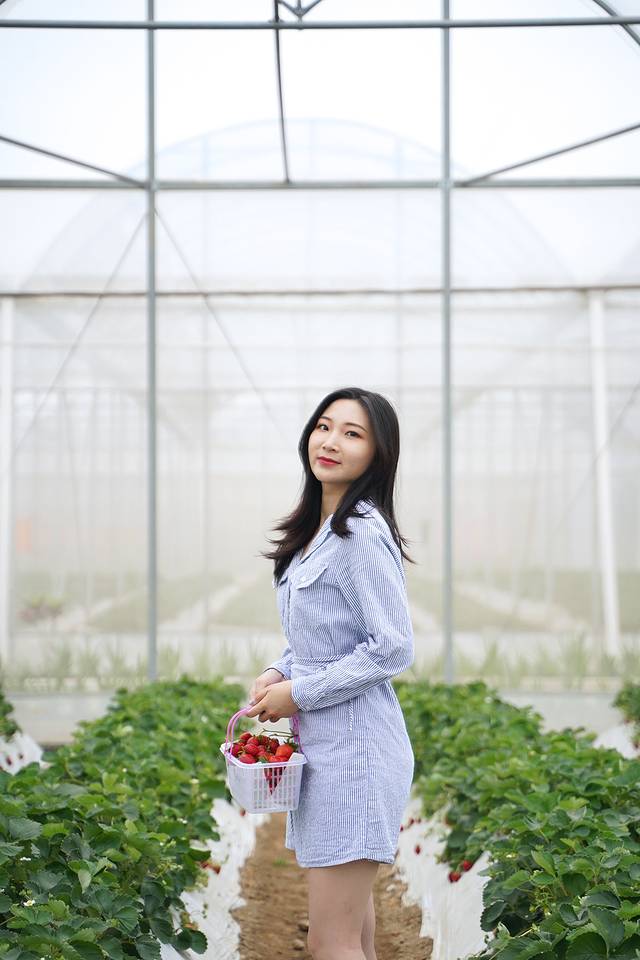 果园规模很大,步入大棚区,连空气都是香甜的。跟工作人员拿一个小篮子就可以到水果棚里采摘新鲜水果啦,主要有草莓、无花果和圣女果,我们去摘了很多新鲜的草莓和无花果。草莓真的巨好吃,又红又大又甜,鲜嫩多汁。
