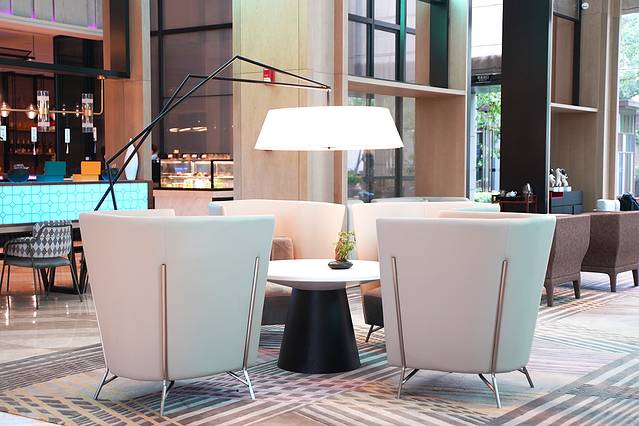 大堂酒廊有着宽大落地玻璃窗,采光很好,给人一种明亮的感觉,加上很多精致的装饰摆件、绿植及具有中式风情的兰花花艺的点缀,显得格外的优雅。在这里喝杯鸡尾酒,品尝下午茶,和朋友聊聊天,感觉就十分惬意。