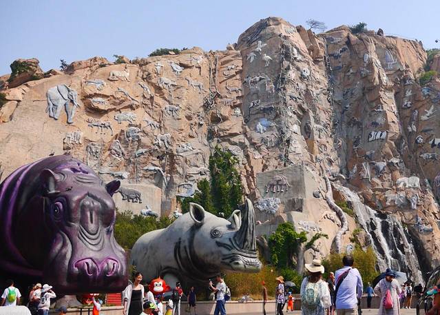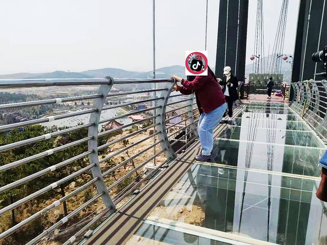 沿路走到第一停车场附近,横空出现一座玻璃桥,约莫有百米高。凌驾在猛兽区之上,这创意也是绝了。走,上去体验一下。