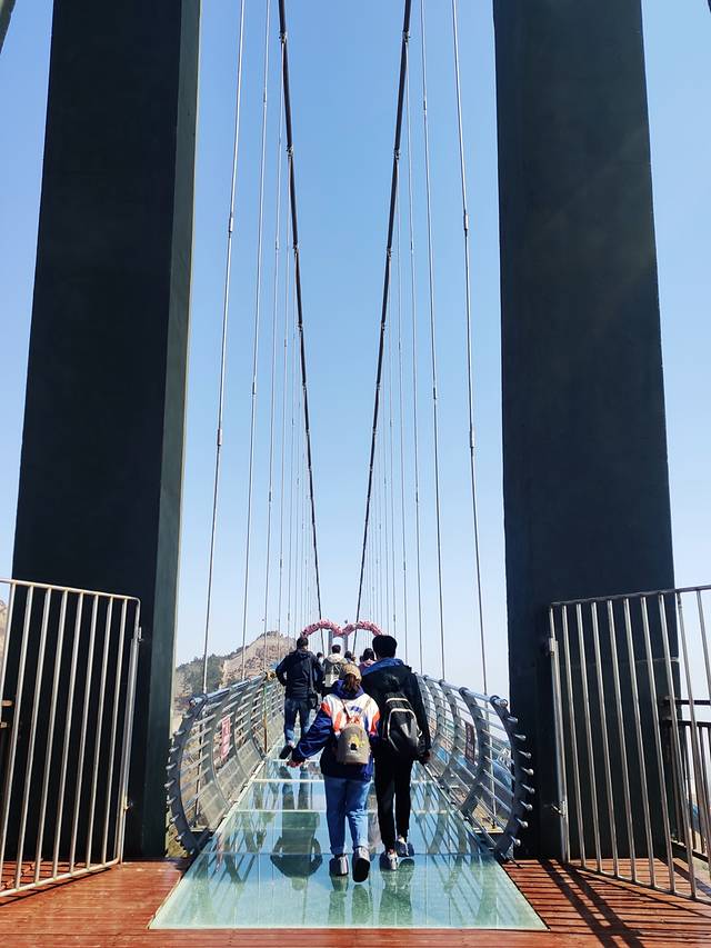 走到60米处,透过玻璃往下看,确实有点晕。尤其是听到一声虎啸,腿有点软,赶紧加快步伐。