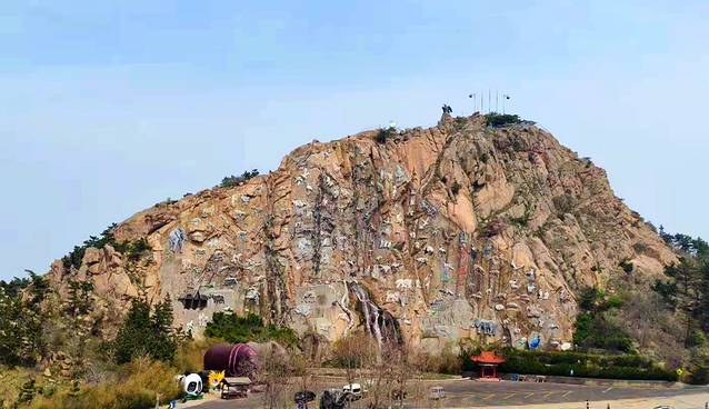 走到最高处,放眼远眺,风景还是很美的。一边是神雕山浮雕,一边是大海。迎着海风,只要不往脚下看,还是很惬意的。