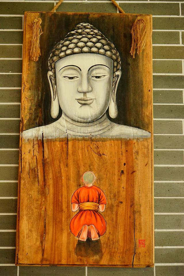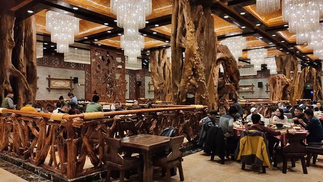 进门迎客的就是一尊大型根雕,是不是弥勒佛?“客自远方来不亦乐乎,佛于根里见合当醉也。”