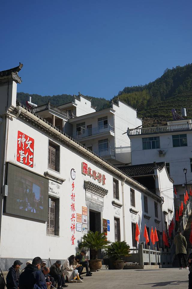 按计划,每天先选定一个目的地旅游景区,然后顺便玩沿线的特色村庄景点。所以出了钱江源,行车半小时,约20公里,就来到了齐溪镇丰盈坦村,一个有着500年历史的古村,现以敬老文化、礼仪文化,打造文化礼堂而成特色。