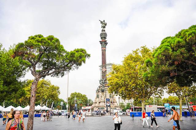 哥伦布纪念塔(Monument a Colom)是为1888年为万国博览会(Universal Exhibition)所建,位于兰布拉大道的最东端,面西背海,南北两条滨海大道在此交汇。60米高塔顶端伫立著意气风发的哥伦布雕像,展示1492年哥伦布第一次从美洲探险凯旋归来。巴塞罗第一个听到哥伦布正式宣布发现新大陆和和对新世界的离奇描述。