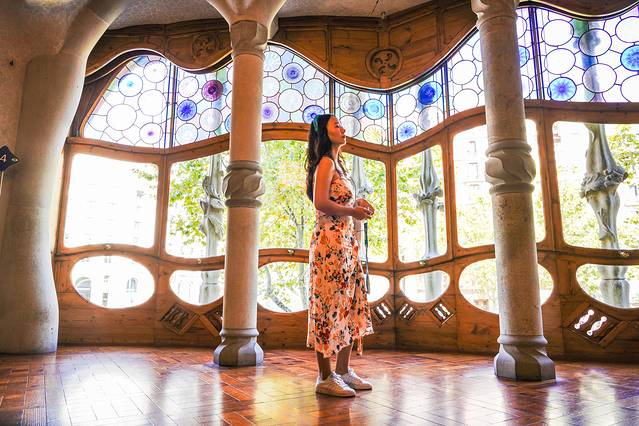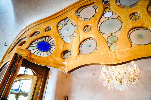 看外面的外墙上有四根骨形支柱,其间装饰有植物的图案,巴特罗之家因此被戏谑为“骨头之家”。观景窗几乎与房间同宽,通过每扇窗户上的垂直开启系统可以完全打开。这一系统依靠隐藏在两端的重量平衡器来发挥作用,是不是很神奇。