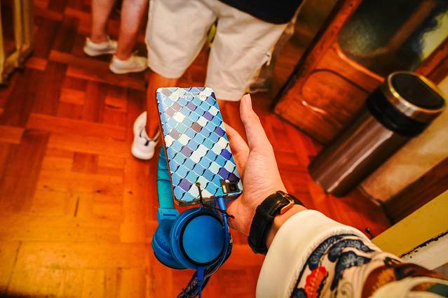 好了我们进来了,每个人先给了颜色超级好看的【手机】+【耳机】蓝色真棒