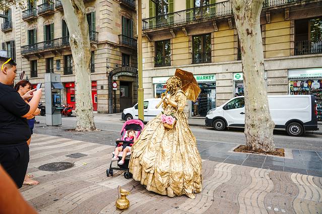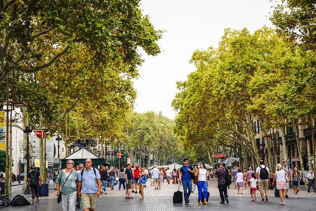好了,我们一路跟着小偷也溜达到了兰布拉大街。这里的知识点呢!
