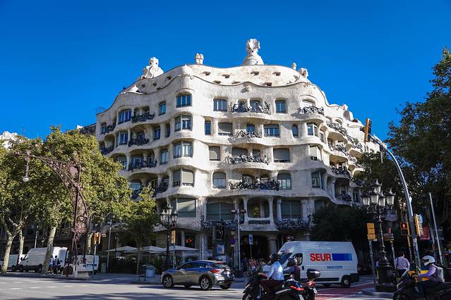 【第一站-米拉之家】坐地铁瞬间就能抵达格拉西亚大街上,在这条街上坐落着一幢闻名全球的造型奇异的建筑——米拉之家。科普下:这座建筑是高迪设计的最后一个私人住宅,白色的石材砌出波浪形的外墙,扭曲缠绕的铁条构成的阳台栏杆,如蜂窝般的窗户,整座建筑个性十足,米拉之家被认为是二十世纪世界上最重要的建筑之一,反正有人叫他【采石场】,我觉得【恐龙蛋】更属实。
