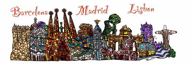 我对西班牙第一印象!如图,这是走之前画的一套,最后做成了箱贴呢!