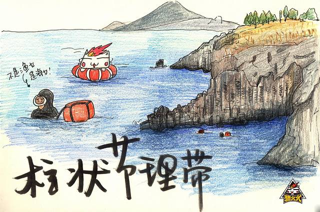【柱状节理带】济州岛奇妙的地质景观‘柱状节理带’所谓柱状节理指的是出现于玄武岩质熔岩里的垂直节理,它是岩浆从火山口喷出,流入西归浦沿岸,遇海水急速冷却,发生收缩作用的结果,这里其实呢是一个公园能看的也只有节理带,最佳观赏时机我觉得应该是大风天,浪大!浪花拍打到节理带上溅起的景象尤为壮观。我们去的时候风平浪静的。不过在这呢,也不是没有收获看到了神奇的海女们,这里就跟大家简单讲讲海女吧!海女是一项古老的职业,指不带辅助呼吸装置、只身潜入海底捕捞龙虾、扇贝、鲍鱼、海螺等海产品的女性。不过现如今能看到的海女并不多了,济州岛海女也算是当地的土特产了!