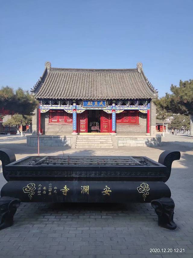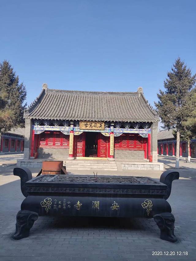 安澜寺始建于清乾隆年间(1736—1795年)。据光绪八年(1882年)碑载:寺有“佛殿一座,关帝庙一座,旗杆一对、群墙山门一间、宫所三间,仙家堂一间、天王殿一座、虫王殿一座、马殿一座、钟鼓楼二座”。占地面积3000平方米,建筑面积700平方米,清乾隆年间石碑2块,光绪八年石碑1块,清乾隆间进士王尔烈题匾“英风万古”1块,寺院僧人10余名。