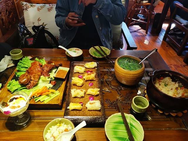 因为打算晚一点去看千古情,所以逛完束河古镇结束,就在当地的人气餐厅吃了一餐,就当是晚餐吧,环境真的是好,要比大研古城的餐厅高几个当次,这边不是很热闹,安静吃着美食,听着音乐,真的是一种享受,点了几个美食都不错,特色小锅饭更是一绝,超级好吃,还有老板送的冰粉真的好好吃,这么热的天喝上一碗真的是一种享受!到束河的盆友,真心推荐大家去这家吃美食,这家据说很多明星吃过哦,牛掰!