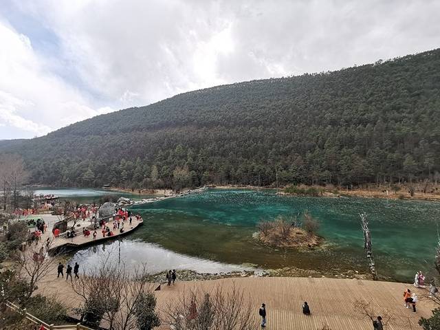 中午司机师傅带我们去吃了土鸡腊排骨火锅,师傅特别好,中间还来给我们加了满满一锅肉~吃饱肯定没问题,作为团餐已经很棒了!吃完饭我们就去蓝月谷溜达拍照,这里很美,水很绿,像个小小 九寨沟~雪山上有个演出,张艺谋导演的印象 丽江 ,因为上次来看过,所以这次没看,