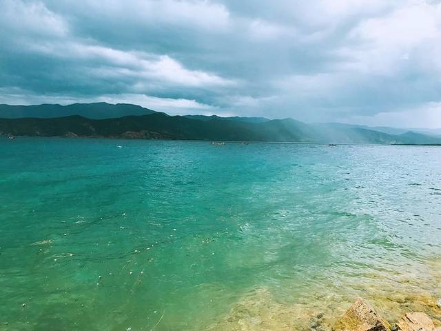 泸沽湖 真的好美,好安静,水好蓝好清澈,可以清楚的看到湖底的水性杨花。走婚桥之后来到了码头,准备坐船过去“亲爱的客栈”,然后登王妃岛。