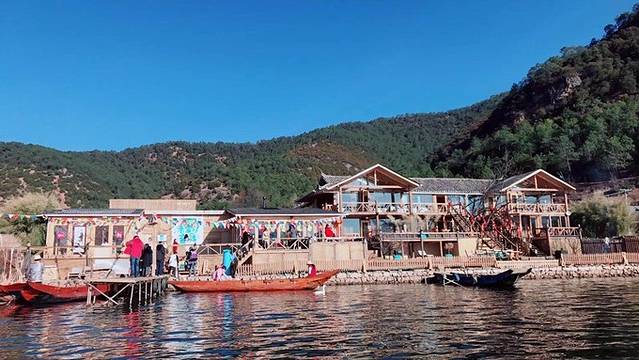 当晚我们是住在湖边的观景房,第二天一早我便跑到湖边观赏风景,不得不说清晨的 泸沽湖 静得可爱。