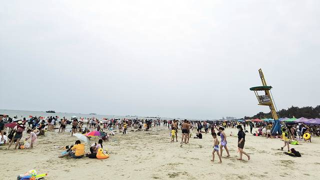 我的快乐好像与想象中并不一样,人潮的汹涌,打破了我们对银滩的所有幻想,我们在海滩上慢慢踱步,看着海滩上这些快乐无比的人潮,识趣的草草离开,或许给自己留点遗憾也是好的。