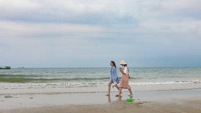 还没有来北海之前,我就听说过北海的银滩,因为银滩太有名了,西起冠头岭,东至大冠沙,由西区、东区和海域沙滩区组成,东西绵延约24公里,面积非常之大,你知道银滩有多大吗?我专门去查了一下资料,北海银滩面积超过大连、烟台、青岛、厦门和北戴河海滨浴场沙滩的总和,规模真是庞大啊。