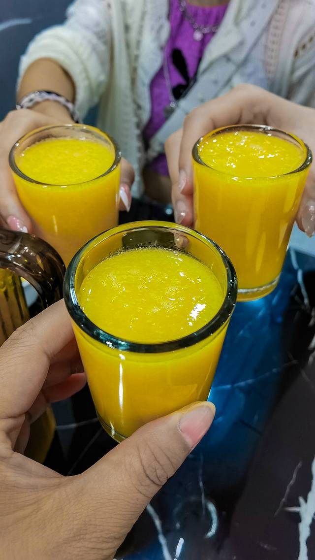 我们自己选了海鲜下了单,很快一瓶新鲜的鲜榨芒果汁端了上来,等菜的时候我们先喝下这香甜的芒果汁,在炎热的北海可以说是消暑的神器啦。没过多久,一盘盘热辣辣的海鲜端了上来,看到这一道道菜的颜色,就知道必定是新鲜出品。