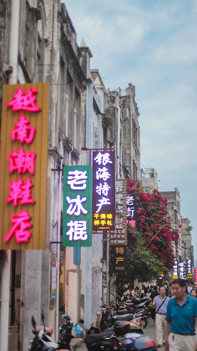 如今的老街已经是北海著名的商业街了,老街两侧的店铺聆郎满目,无论是虾饼、疍家海鲜、粤式点心,还是咖啡下午茶,这里从古至今都诉说着普通老百姓自己的生活,生生不息。