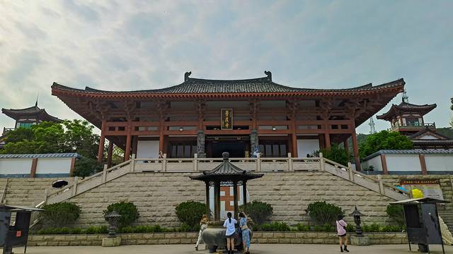 走进普度寺,跟随着信众的香火,我们来到主殿前,寺庙的主体建筑呈现在我们眼前。在遵循禅宗“伽蓝七堂”制度的前提下,以汉唐气魄宏伟,严整开朗、庄重大方、色调简洁明快、屋顶舒展平远,门窗朴实无华为主格调设计,最大限度地综和冠头岭的山、水、林。而北部湾的海与风,融寺院建筑于自然环境之中,将普度寺建设成北部湾最好的园林寺院,建设成以修行佛法、弘扬圣教、昌善导德、净化人心为主的非商业化的道场。诚信立佛,也不忘拍几张照片纪念啦。