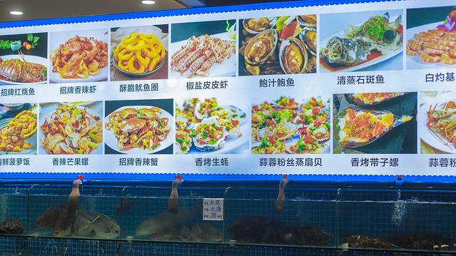 来到餐厅门口,第一眼就让我们放心了,因为以前去三亚的时候,看到三亚的海鲜餐厅都是明码标价的,但是在北海很少看到这样的明码标价,就让人很没有安全感,害怕被宰,所以迟迟不敢下手,但是汪姐家的海鲜都是明码标价自由选择的,也是我们最终决定就这家的一个主要原因。