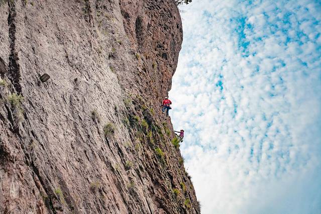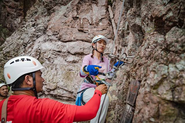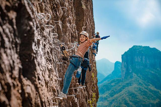 飞拉达,意大利语“ViaFerrata”音译,意为铁道式攀登,利用铁索、脚蹬的辅助,进行峭壁攀爬的登山方式。让不会攀岩的人也能体验天然峭壁上的惊险刺激。而雁荡山也有飞拉达,堪称“亚洲第一险”,华东挑战最强的飞拉达。