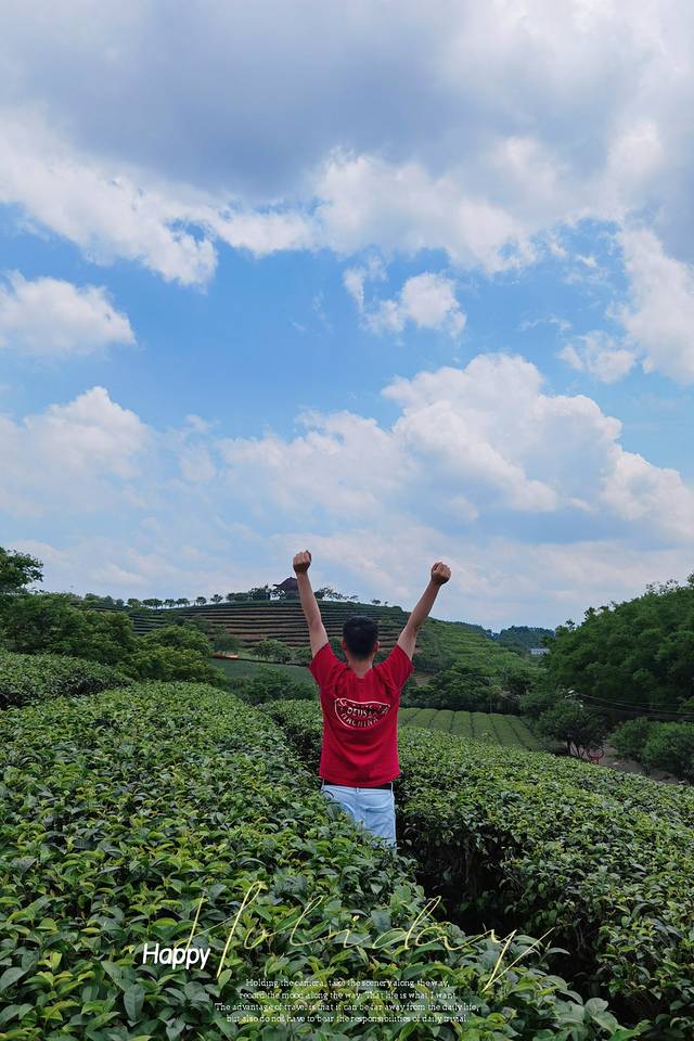 放眼望去是郁郁葱葱的茶田,空气中还有着似有若无的茶香味