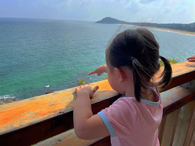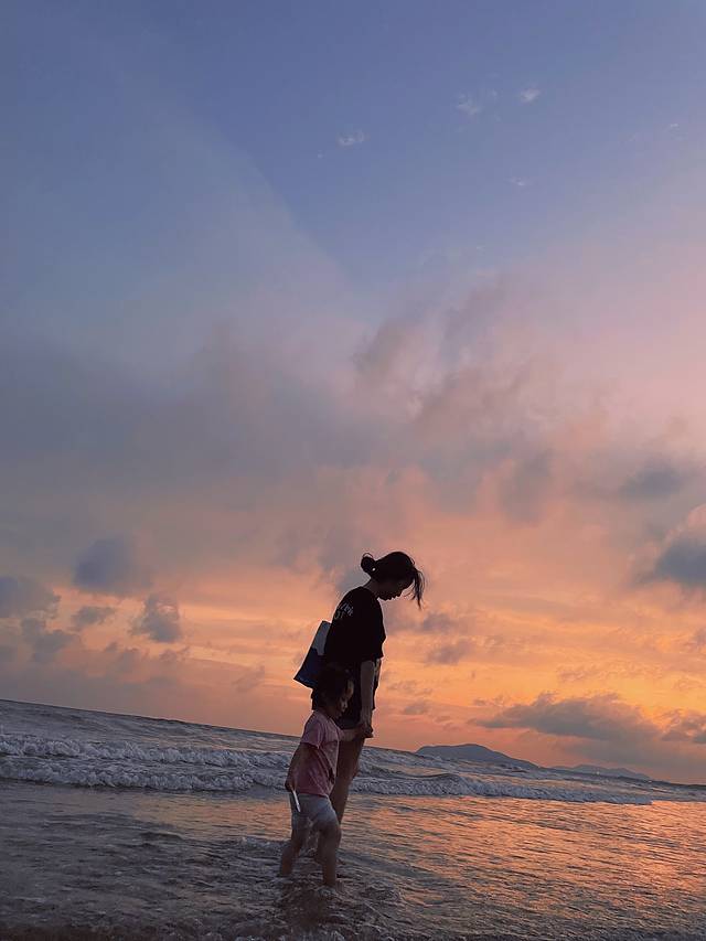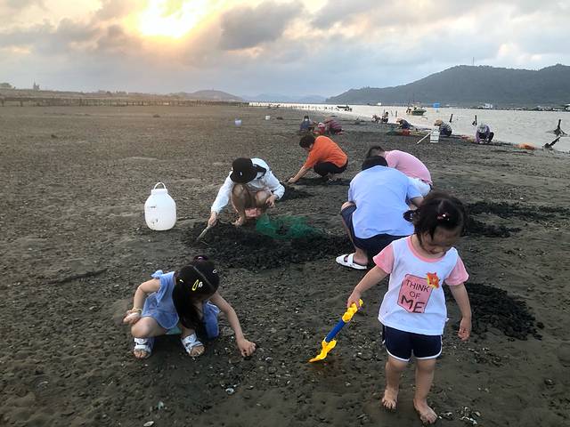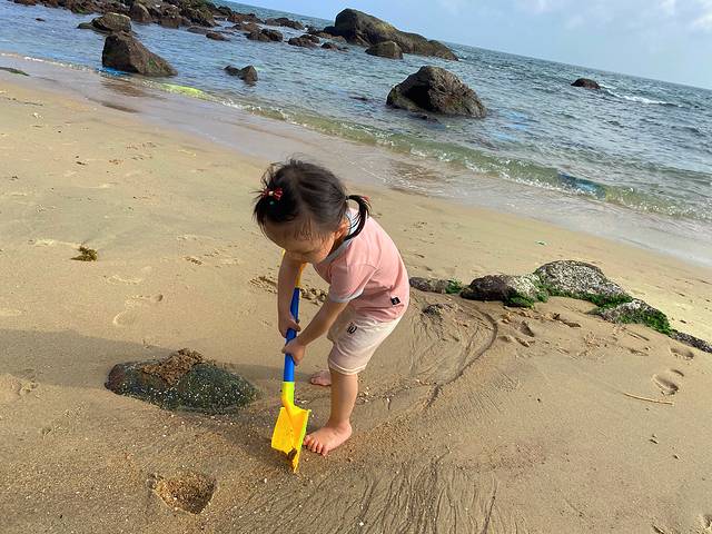 这里是亲子游首选,小饭团有水玩,有贝壳捡,天黑了还能在旁边的海鲜大排档用餐。