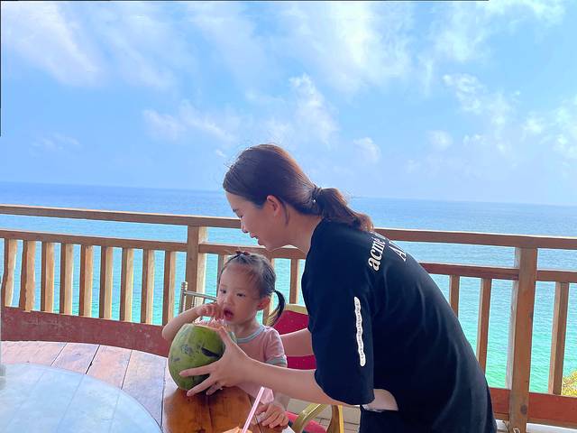 吃完午餐往前开车1公里有间叫蓝星饭店的地方,绝对是观海一绝,也可以下去玩水(禁止游泳),遇到天气好还可以看到翡绿色的海水,一路上有10元3个的西瓜,店里还能点椰子喝。