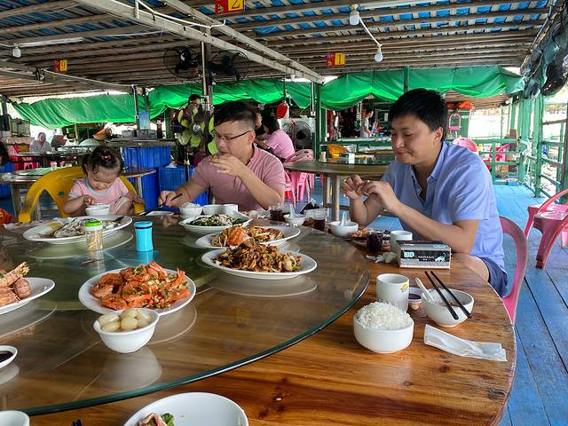 一大早我们赴赶于第一餐海鲜盛宴,来到距离阳西县城仅20公里的河北港,离沙扒湾30公里左右,由于上面定位出错,真正的渔排餐厅在海陆空牌坊右转直走500米,是坐在海上渔排用餐,浪大的时候还会摆动,值得体验一下。
