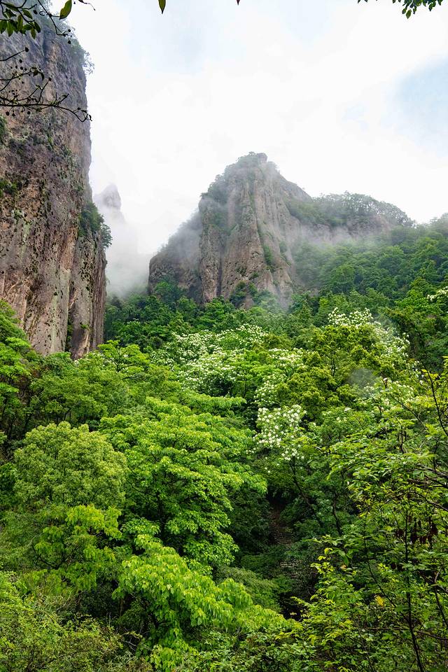 来 雁荡山 的三折瀑之前,就听说过这么一个传说,说徐霞客三过其门而未入,原因是三折瀑太隐秘了,深藏在山谷中,徐霞客没能看到,所以就三次错过。而根据我多年的旅行经验,像这种藏匿在深山峡谷中的瀑布,风景是绝美无比的。果然,刚一走进三折瀑景区,就被这鸟语花香满眼葱翠所吸引住了。