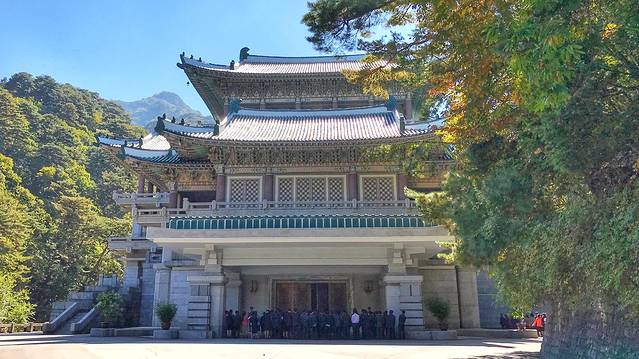 早上:平壤坐大巴前往妙香山(158公里,2.5小时)参观博物馆及普贤寺。